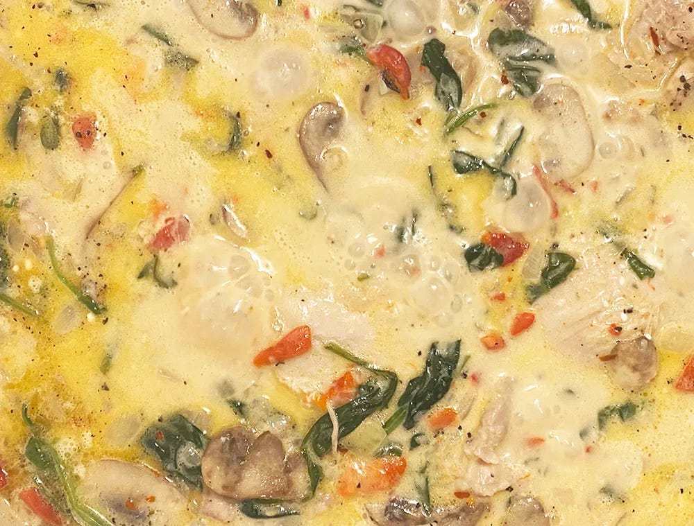 It’s fair to point out what I’ve cooked up here is similar to what is sometimes called Chicken Florentine. America’s Test Kitchen called chicken Florentine a “buffet-line favorite” in a 2019. But like Mediterranean Chicken, there’s not a single definitive recipe.